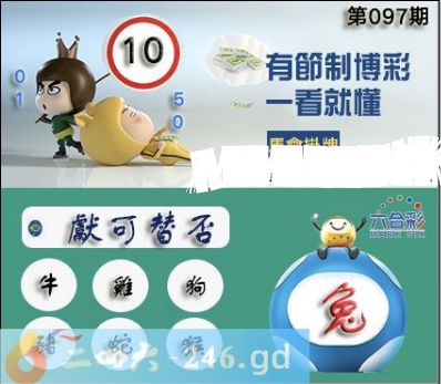 2025097期2025年097期正版彩图挂:10 爆:兔 挂牌成语:献可替否 挂牌出肖:牛鸡狗猪蛇猴