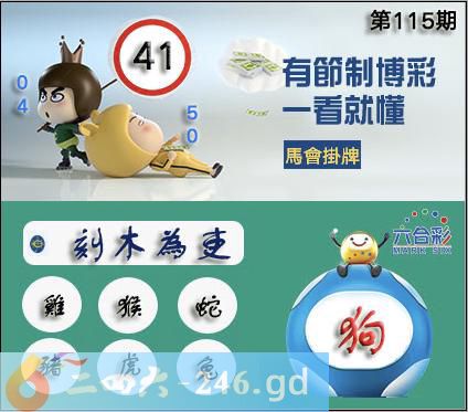 115期开奖时间2025年10月25(星期六)晚9:30开(农历九月初五兔冲鸡) 生肖属性:丁卯日;五行属性:火;地支六冲:兔冲鸡,无龙;六合:狗;三合:羊猪。空亡肖:马虎。 六合不出:龙羊蛇;三合不出:牛虎兔;应开生肖:猴猪蛇马牛。防:龙狗 开奖日必开生肖兔日:虎猴猪龙牛蛇 开奖日日柱对应五行丁卯日:土木金 开奖日必开生肖丁卯:鼠龙鸡虎猴猪 上期兔,必开:马猴狗牛鼠鸡猪 《115期》《《香港掛牌之全篇》》 115期正版彩图挂:41爆:狗挂牌成语:刻木为吏挂牌出肖:鸡猴蛇猪虎兔 [释义]意思是不能受狱吏的污辱,即使是木头做的狱吏也不能见他。形容狱吏的凶暴可畏。 115期另版香港马会挂牌:33鼠 115期马会挂牌20射1641 115期正版数码挂牌:28射:3547壹句真言:夜水浅急不可越(23568) 115期蓝天玄挂牌:13牛 115期四柱《男不着丁女在舍》 115期藏寶圖新:银钩华榜伍云间老:写尽回文机上意禁:猴禁:6尾玄機字:《葛》 115期跑狗:【旗】旗映殘陽,血染征裳。不破樓蘭,誓不還鄉。玄機測字:《權》 115期香港关门联:三六是计虚与实,玉女在怀不敢欺。解[翻][3568] 115期香港开门联:午未旺相不算空,本期要钱看红蓝。解[冀][4037] 115期另香港关门联:皇家子弟多富贵,粉蝶戏弄美人钗解[卖][67102] 115期另香港开门联:马后羊前三中特,奸臣献计斩忠良解[烛][19839] 115期内部万花来料:万花开在双数博特看三六,蓝红色彩尽显鼠藏狗居 115期台湾玄门挂牌:[一二三四][374] 115期挂历诗:二将交锋在沙场,决胜雌雄使刀枪。 115期火车头:烧伤马。诗:羊死龙伤,四书五经读一生。 115期火烧图解:火烧“兔”。诗:四七相合二中四,对一三配山重山。 115期无字天书:好马今期走在先,好狗独守龙门前。鼠20 115期最老版无字天书:各有特色守本期,各为主子守命来。牛29 115期九宫禁肖:马 115期必中人物:童猛 115期二字经:展品 115期六合信箱紅字:詞窮理虧暗码:06151921 115期一語中特:九死一生 115期挂牌绝杀料/挂牌绝杀:羊 115期正版黄大仙射箭图:22射4531 115期另版黄大仙射箭图:08射1936 115期香港牌:[老鼠过街][012] 115期内部运程曰:三寸四尺。配密码:{248} 115期香港信封挂牌:宇宙戎装一身轻(午时上下)加1825 115期波段预测:01----2029--40 115期特码大小单双句:男不着丁女在舍解?? 115期特码大小单双句:琼浆玉液作酒解解?? 115期铁算盘:大码应写小生肖(宴赏落花)开:? 115期香港版《香港六合天书挂牌》天书:横竖成形非一五,单看发财六字中。天码:01,13,24,28,32,34,42,48 115期(香港版)六合对联诗:横联:看前看后上联:三六是计虚与实下联:二五本期相见面解:相。密码:498271 115期正版马会大门口挂牌一句话:本期二九共见参一数【挂47送23】开 115期另类马会大门口挂牌一句话:猴狗鼠鸡天易老【马会送04】开 115期香港生活开门联:三十有码心中取,三二本道今期发解[道][34872] 115期香港生活关门联:本是林中一小卒,如今发财一小王解[卒][30487]