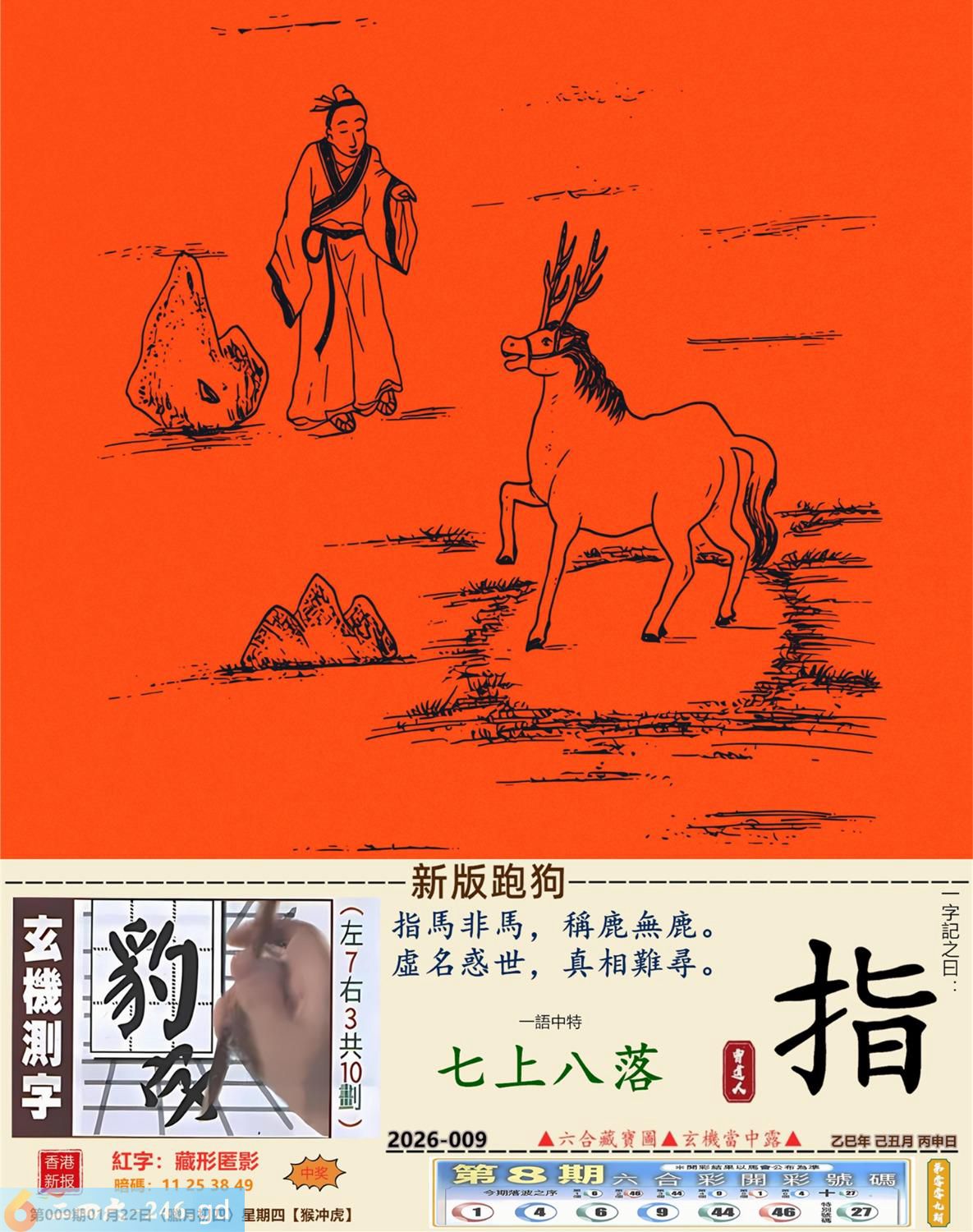 2026年1月22日009期虎(庚寅)(山下火) 009期:老版跑狗玄機一字記之曰:【心】 詩云:亂我心者不需要知我心者有多少 狂蜂浪蝶,不堪其擾,亂我心者不需要; 真正情人,蹤寂音杳,知我心者有多少。 玄機測字:《鎔》 密圖詩:榮華富貴享不盡 《記》:姑息養奸翻賊船 特碼大小單雙句:特碼不是凡夫采 今期必中:劉備 009期:特碼歇后語 禾苗怕蝼蛄-----一物降一物 009期正版四字梅花诗:焉知非福。 009期火车头:烧伤龙。诗:马死蛇伤,鸡猪伪装寻主生。 009期香港第一手欲钱料:二。 009期曾道人说:“三星?” 009期另版四字梅花诗:变出中间。 009期香港第一手欲钱料:欲钱看一力金毛遍全身。 009期曾道人说:“女人二十最喜欢得到什么东西”? 009期:二字經:超強 009期:八哥是特码 009期:智力金壤;凿壁偷光 009期:信箱紅字:【藏形匿影】 009期:【暗碼:11-25-38-49】 009期:一語中特:【七上八落】 發財玄機圖:聲威震天電閃雷動圖中明龍紅綠 009期:藏寳圖 新:吊屈谁知特怆神 老:小男供饵妇搓丝 禁:猴禁:4尾玄機字《醋》 2026年009期【生活幽默】版 〖你想過富裕的生活嗎〗 科恩是醫學院的學生,他想學心臟外科,又拿不定主意,于是去請教奥本教授。奥本教授問他:"小伙子,你想過富裕的生活嗎?" "當然!" "那你應當學牙科。""爲什呢?" "你想想,人的心臟祗有一個,而牙齒却有二三十颗。"