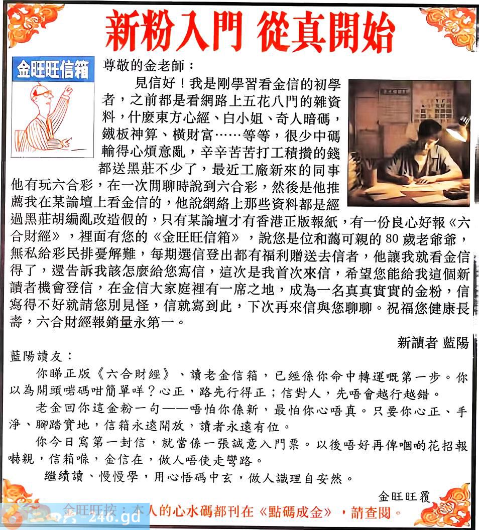 123期:金旺旺信箱彩民推荐→→《新粉入門 從真開始》