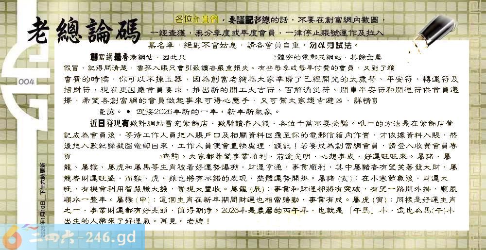 004期:六合皇金句/老总论码/萧公子/林大师/五行夺码/老总信箱截图