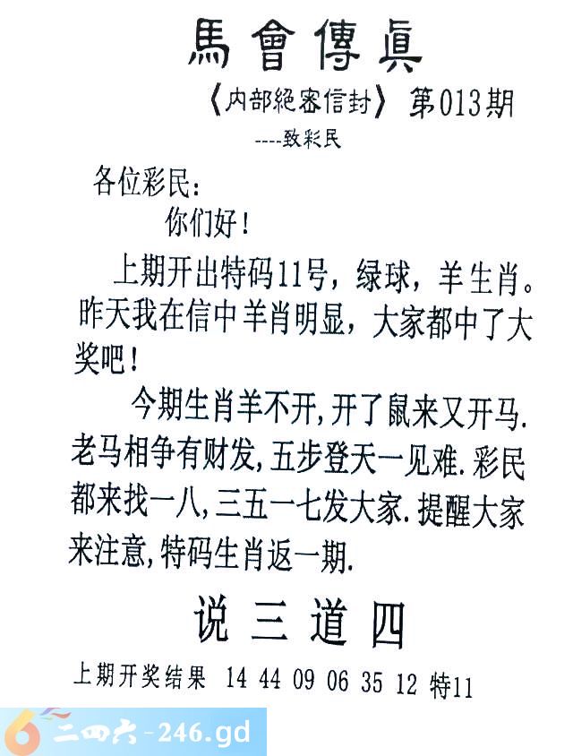 013期:首发推荐:≮馬會傳眞≯→(香港正版)