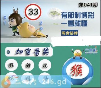 2026041期041期正版彩图挂:33 爆:猴 挂牌成语:加官晋爵 挂牌出肖:猴鸡虎蛇龙马
