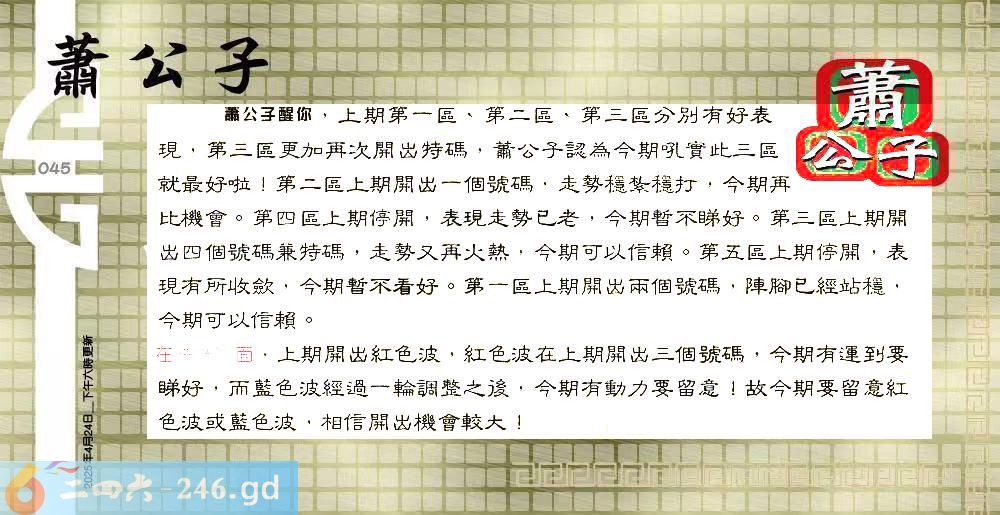 2025045期045期:彩民推荐六合皇信箱(紅字:神采飛揚)