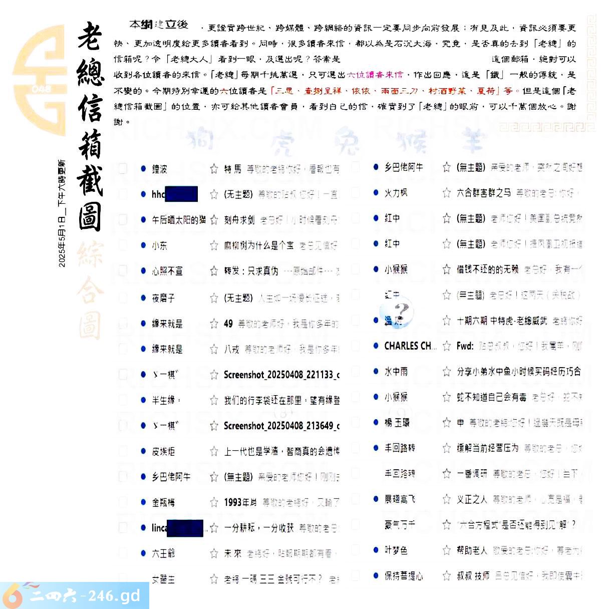 048期:六合皇金句/老总论码/萧公子/林大师/五行夺码/老总信箱截图