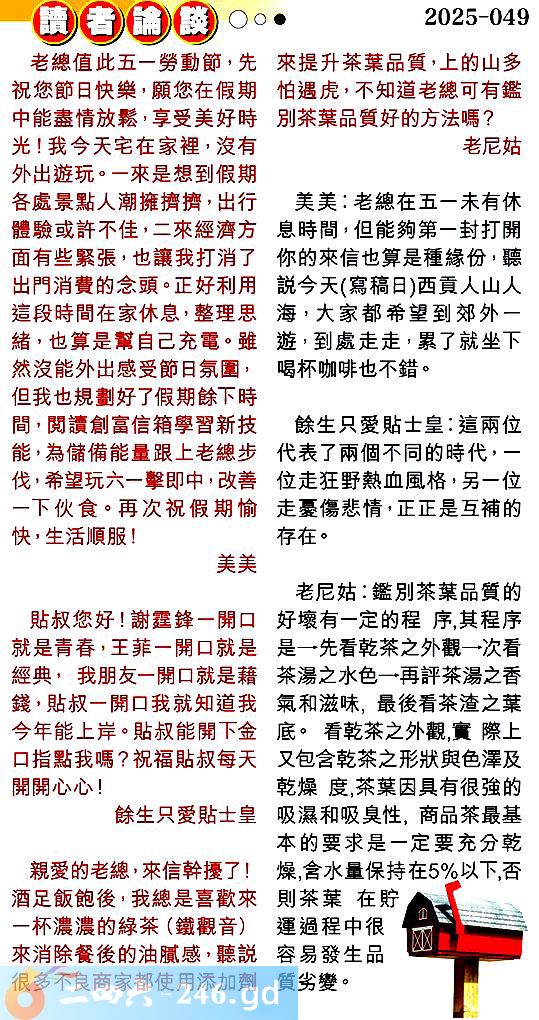 第零四九期讀者論談