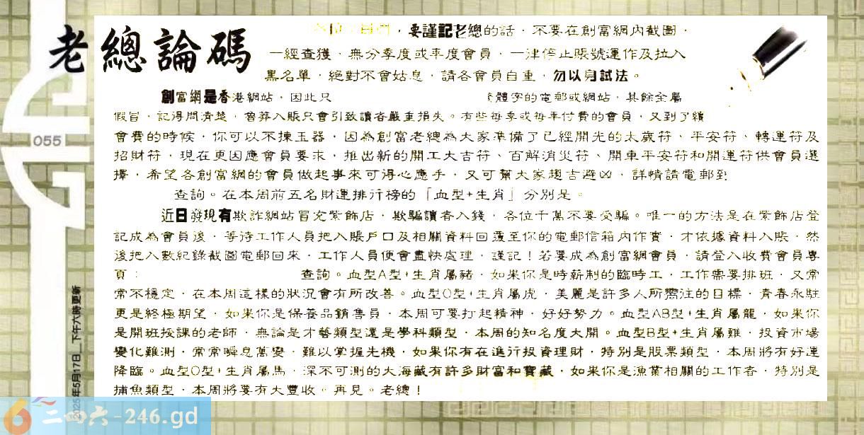 055期:六合皇金句/老总论码/萧公子/林大师/五行夺码/老总信箱截图