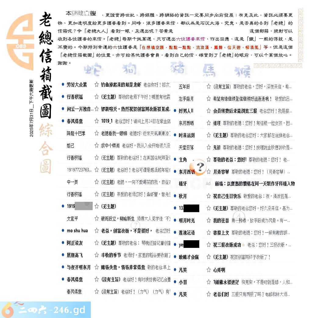 083期:六合皇金句/老总论码/萧公子/林大师/五行夺码/老总信箱截图