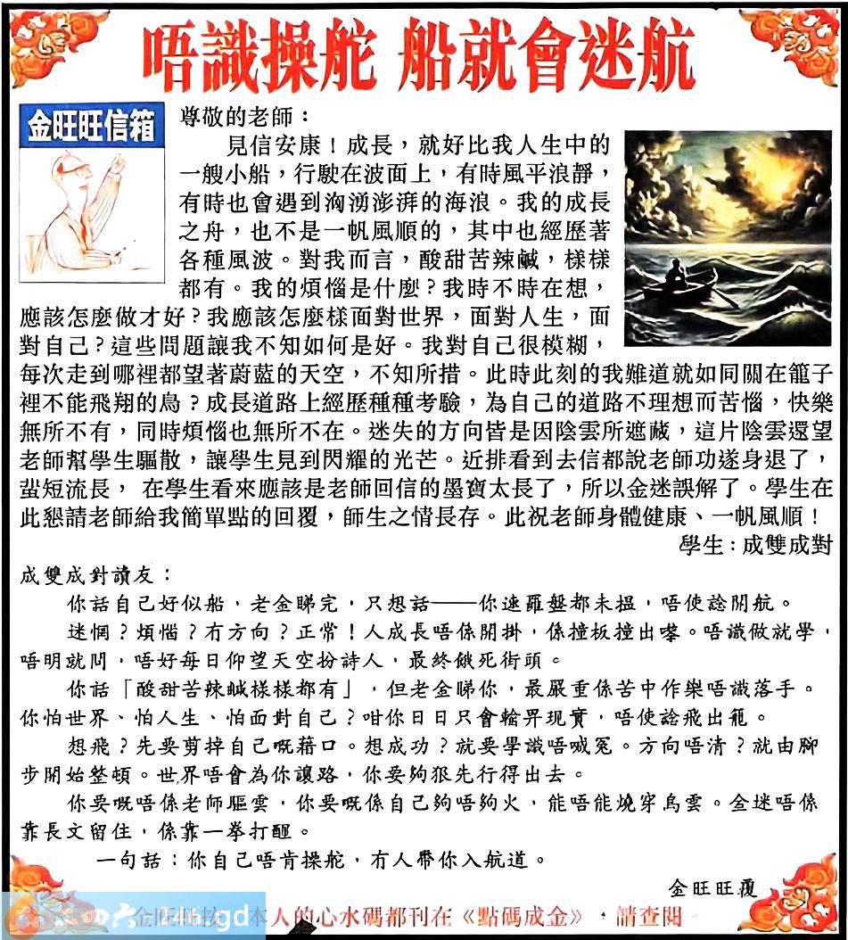 090期:金旺旺信箱彩民推荐→→《唔識操舵 就會迷航》