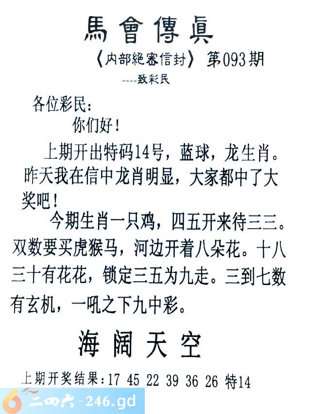 093期:首发推荐:≮馬會傳眞≯→(香港正版)