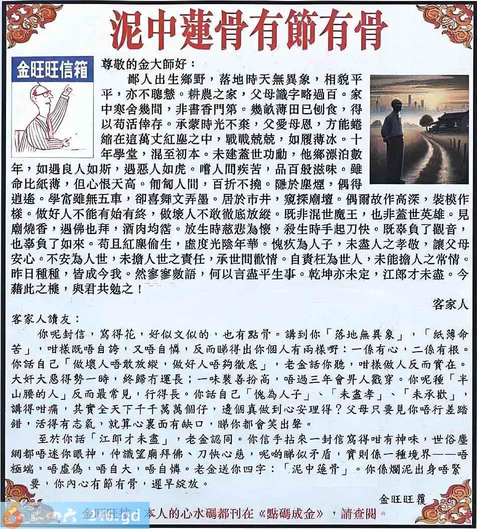 2025097期097期:金旺旺信箱彩民推荐→→《泥中蓮骨節有骨》