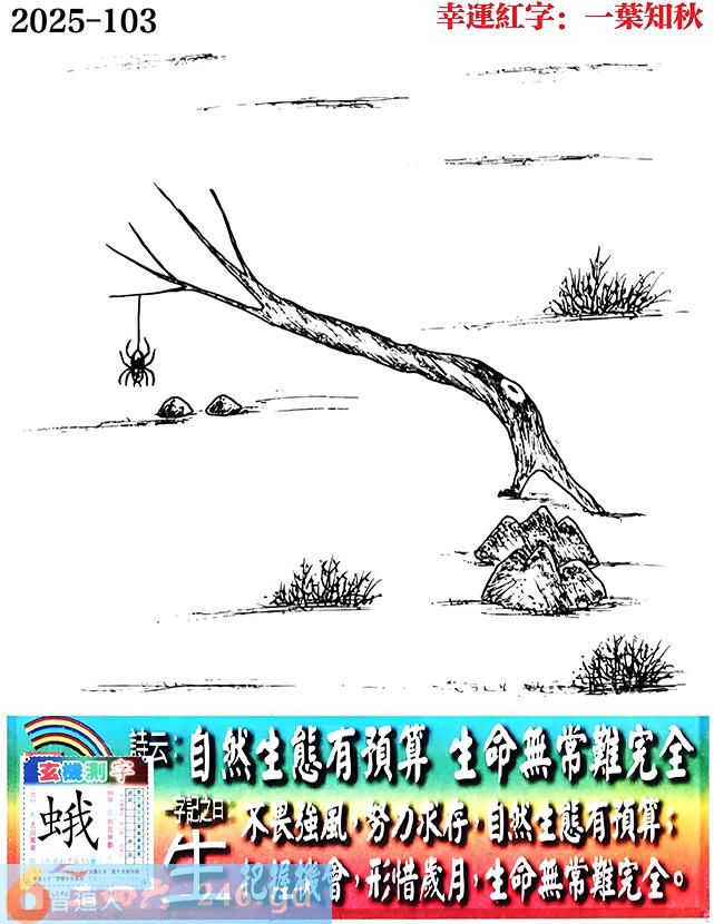 2025103期103期老版跑狗一字記之曰:【生】 詩雲:自然生態有預算,生命無常難完全。