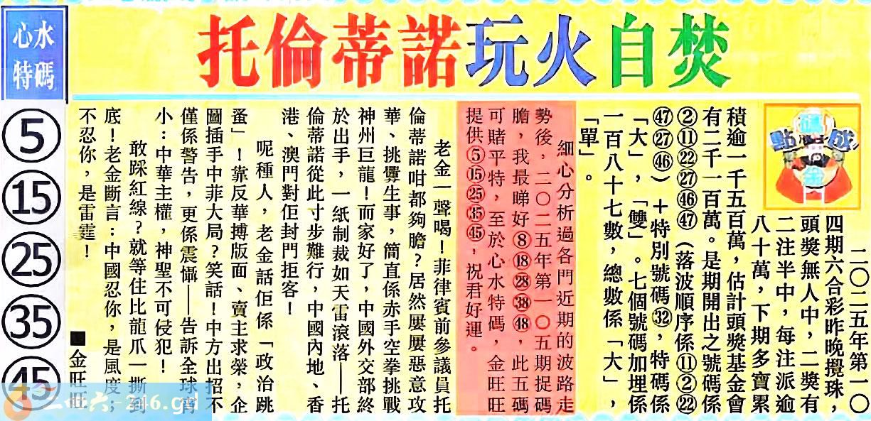 105期:金旺旺信箱彩民推荐→→《愛唔對人 轉身就係贏》