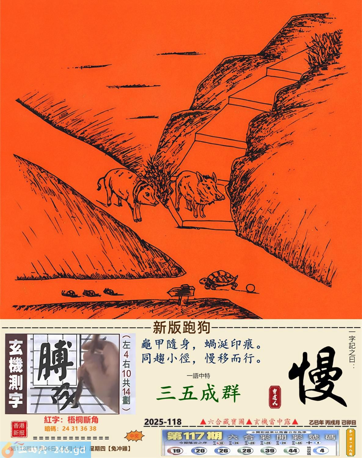2025年11月6日118期鸡(癸酉)(城墙土) 118期:老版跑狗玄機一字記之曰:【急】 诗云:貪小便宜不應該循序漸進急不來 為求小財,身陷大災,貪小便宜不應該; 衡量得失,潔身自愛,循序漸進急不來。 玄机测字:《峭》 密圖詩:一臉蒙逼買三四 《記》:八面來風臘月會 特碼大小單雙句:小小買注二十塊 今期必中:馬岱 118期:特碼歇后語 饿着肚子造反-----借机(饥)闹事 118期正版四字梅花诗:一丝不挂。 118期火车头:烧伤马。诗:猪死猴伤,绿波今期有特码。 118期香港第一手欲钱料:暗淡无光。 118期曾道人说:“春暖花开?” 118期另版四字梅花诗:羊入虎口。 118期香港第一手欲钱料:欲钱看飞机。 118期曾道人说:“为什么英雄爱美人呢”? 118期:二字經:七碼 118期:轮船是特码 118期:智力金壤:无为而治 118期:信箱紅字:【梧桐斷角】 118期:【暗碼:24-31-36-38】 118期:一語中特:【三五成群】 發財玄機圖:神通廣大雷電交加圖中明龍紅綠 118期:藏寳圖 新:苏小门前万缕垂 老:伴人东去到江城 禁:羊禁:5尾玄機字《存》 2025年118期【生活幽默】版 〖用中文怎么說〗 有個外國學生初學中文,十分吃力。 有一天,老師問他:“如果我想讓某人到這邊來,用中文怎麼説?” 這外國學生一字一頓地説:“這邊請。”老師聽了滿意地點了點頭:“那麽,如果我想讓某人出去,用中文又要怎麼說?" 衹見外國學生走到外面,然後對老師說:‘這邊請’。”