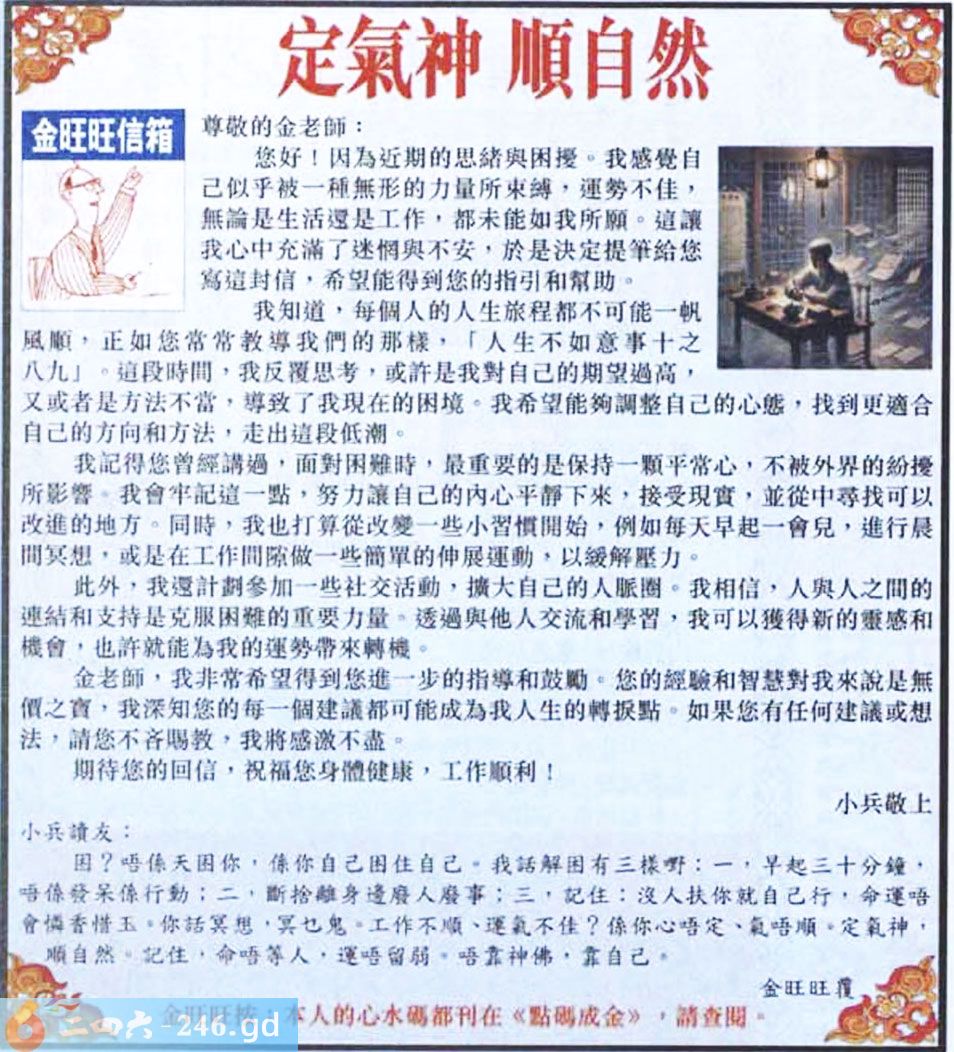 2025134期134期:金旺旺信箱彩民推荐→→《定氣神 順自然》
