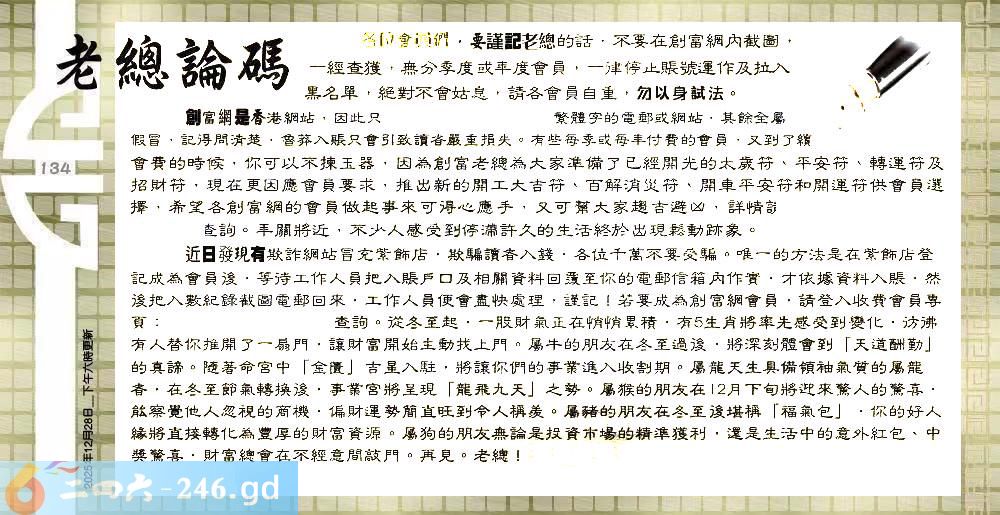 134期:六合皇金句/老总论码/萧公子/林大师/五行夺码/老总信箱截图