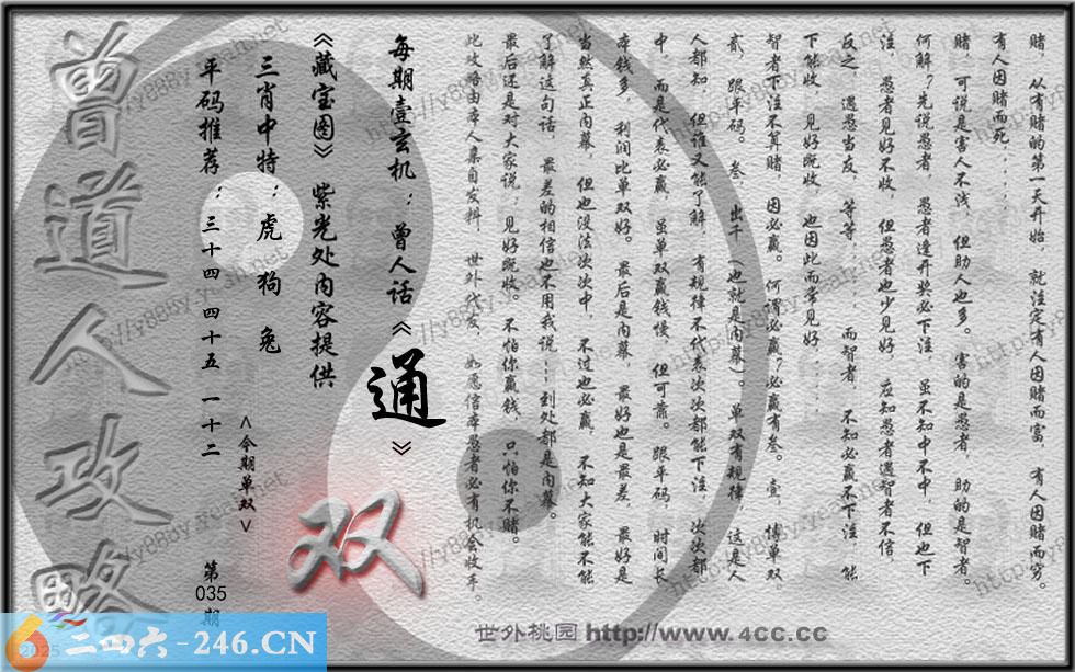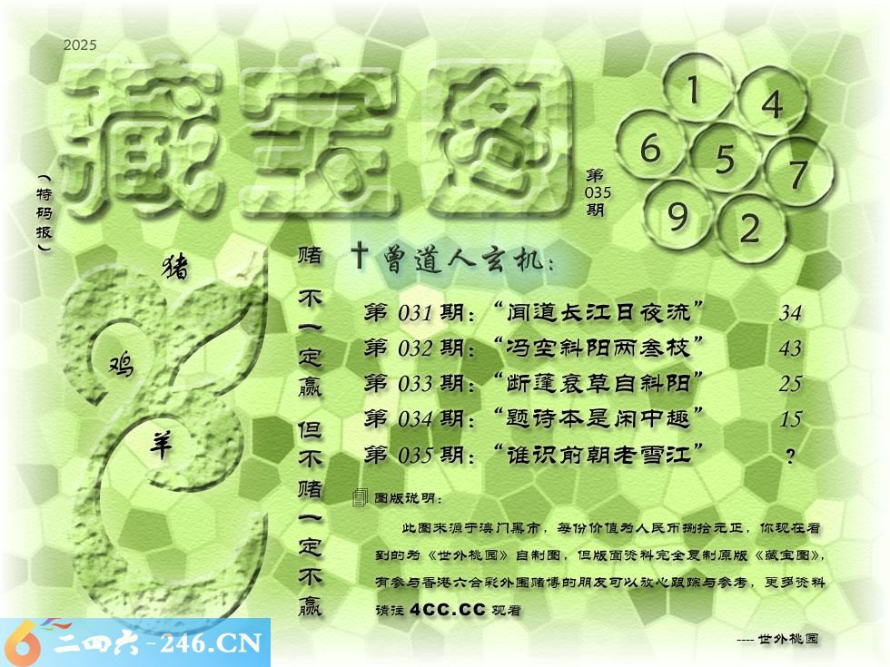 035期藏寶圖 新:谁识前朝老雪江 老:华表鹤来应有语 禁:猴 禁:8尾 玄機字:《通》