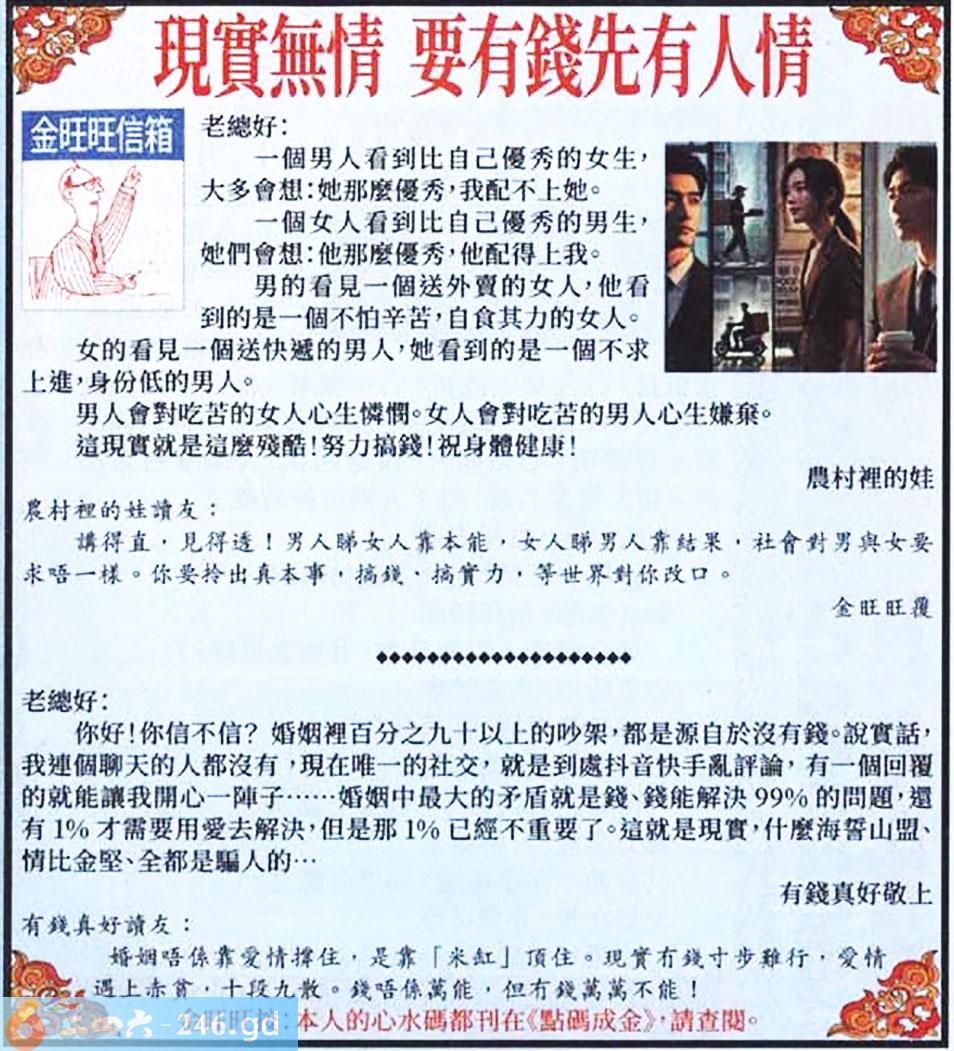 2025017期017期:金旺旺信箱彩民推荐→→《現實無情 要有錢先有人情》