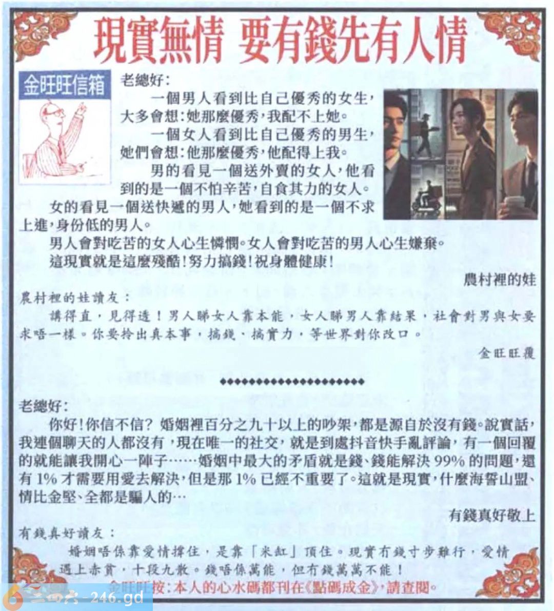 2025017期017期:金旺旺信箱彩民推荐→→《現實無情 要有錢先有人情》