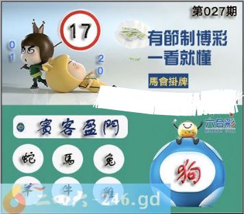 2026027期027期正版彩图挂:17 爆:狗 挂牌成语:宾客盈门 挂牌出肖:蛇马兔羊牛鸡