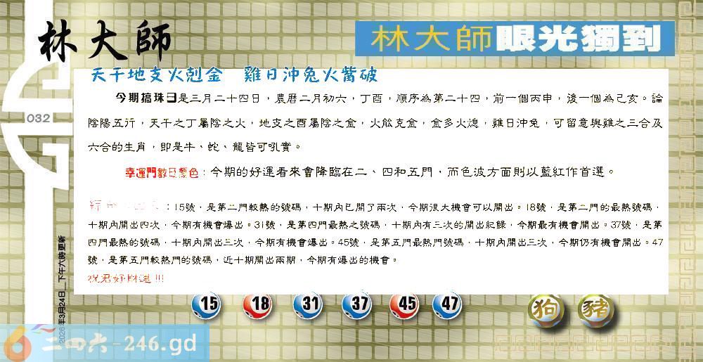 2026032期032期诗象:旧,旧情复发不可收。一句猜:六合出特不会游。提供:(12鸡,兔)包中。