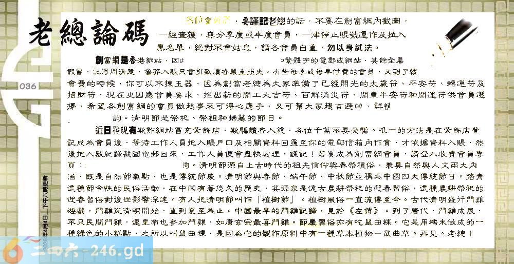 036期:六合皇金句/老总论码/萧公子/林大师/五行夺码/老总信箱截图