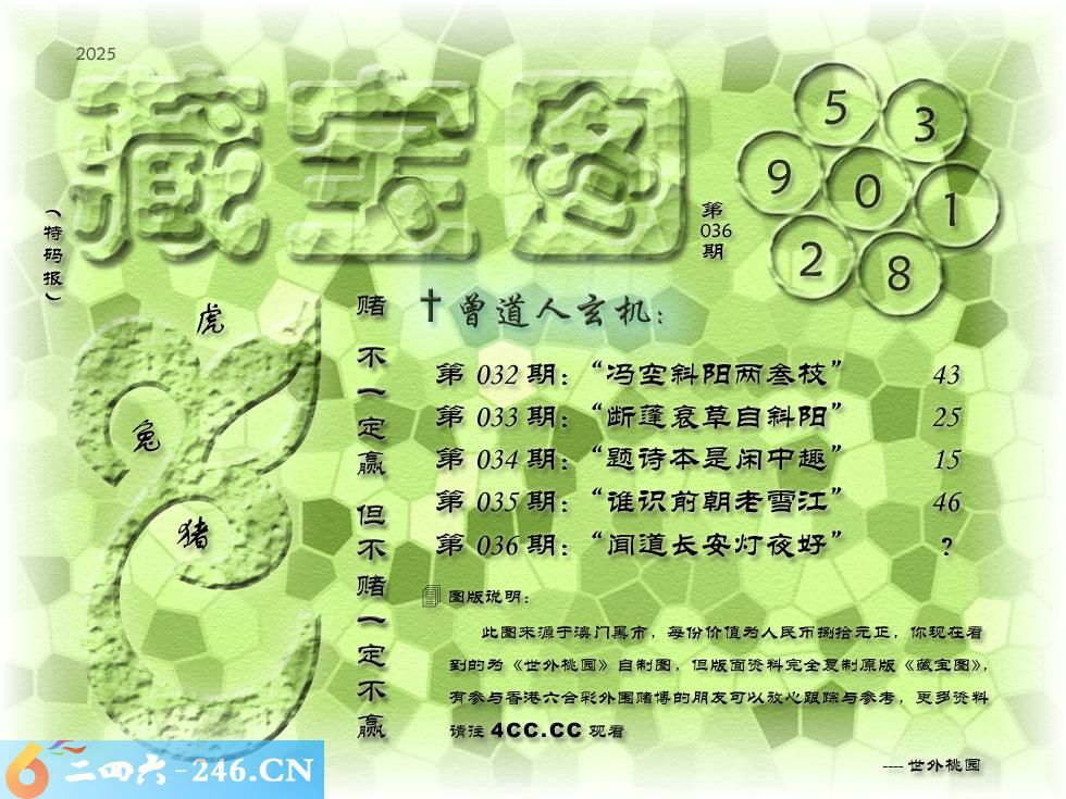036期藏寶圖 新:闻道长安灯夜好 老:且插梅花醉洛阳 禁:牛禁:6尾玄機字:《倥》