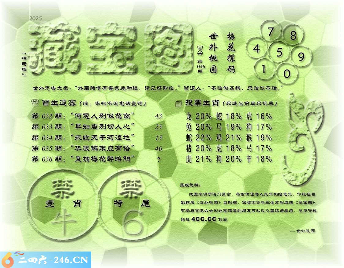 036期藏寶圖 新:闻道长安灯夜好 老:且插梅花醉洛阳 禁:牛 禁:6尾 玄機字:《倥》