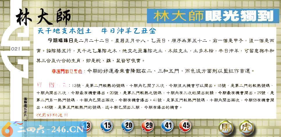 2025021期021期:彩民推荐〖貼信讀者論壇〗