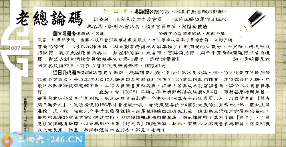037期:六合皇金句/老总论码/萧公子/林大师/五行夺码/老总信箱截图