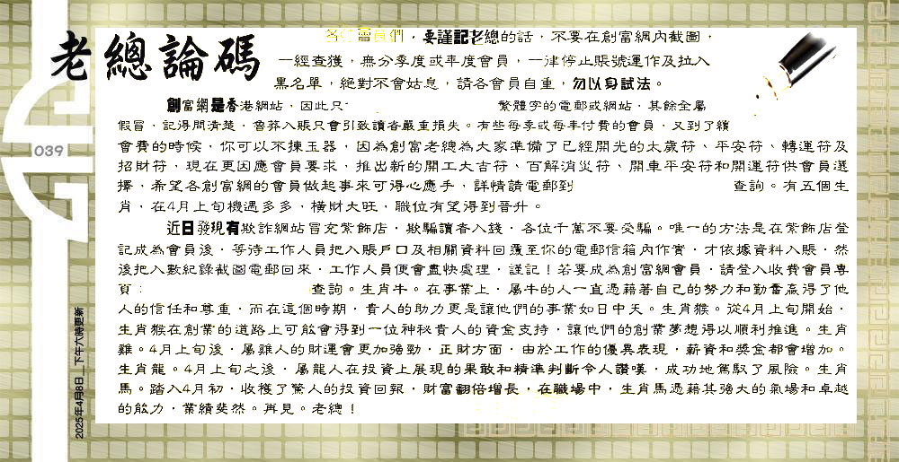 2025040期040期:六合皇金句/老总论码/萧公子/林大师/五行夺码/老总信箱截图