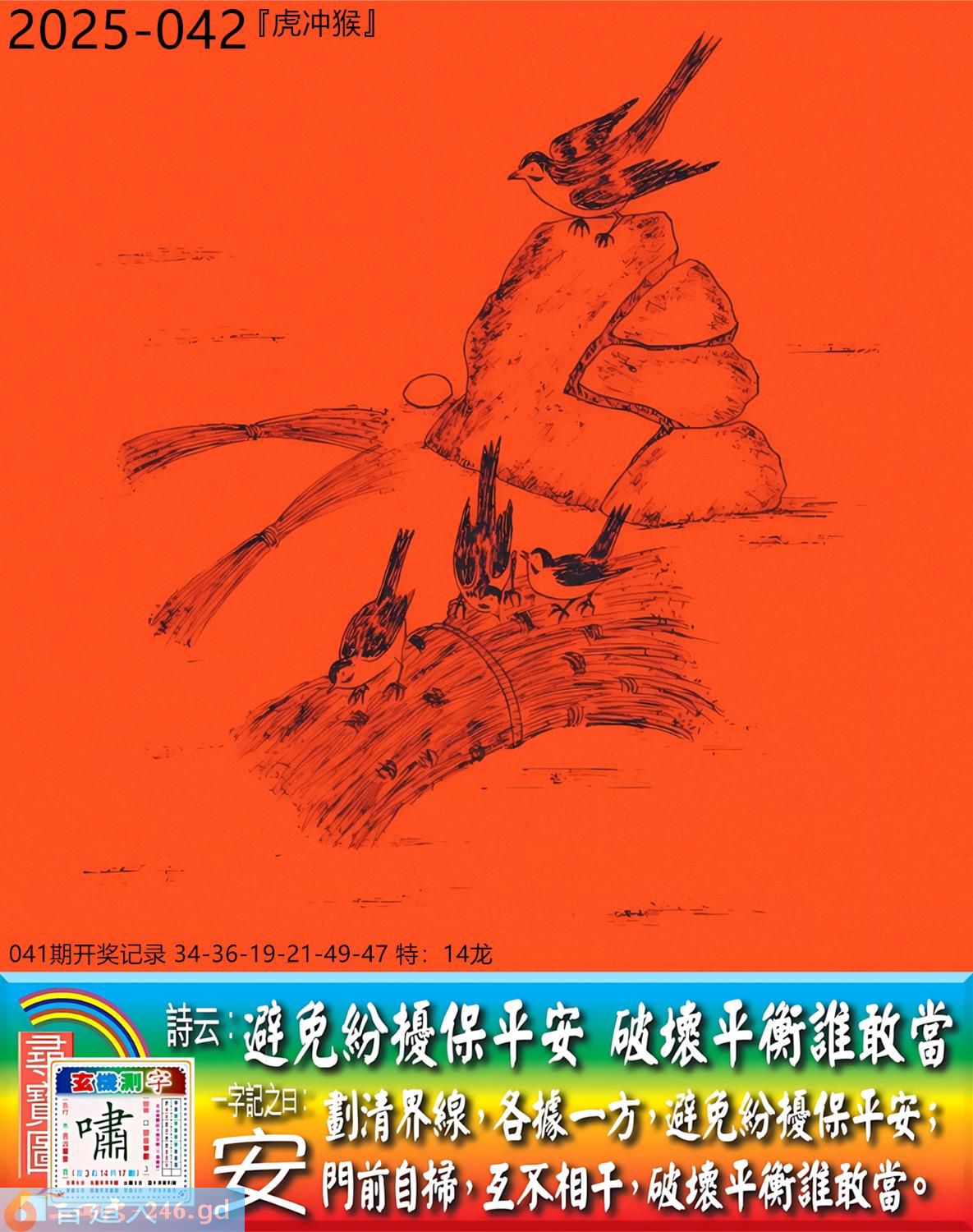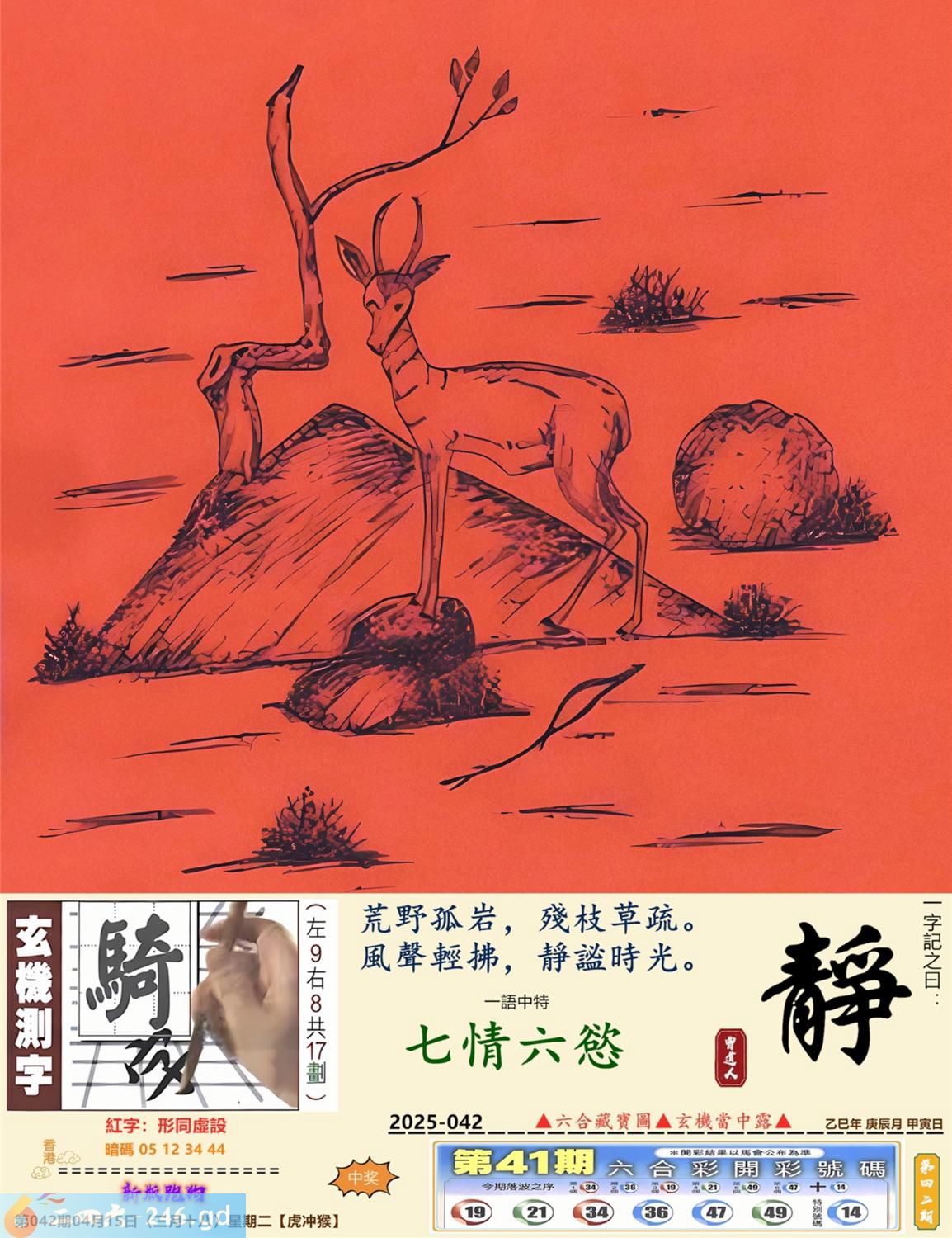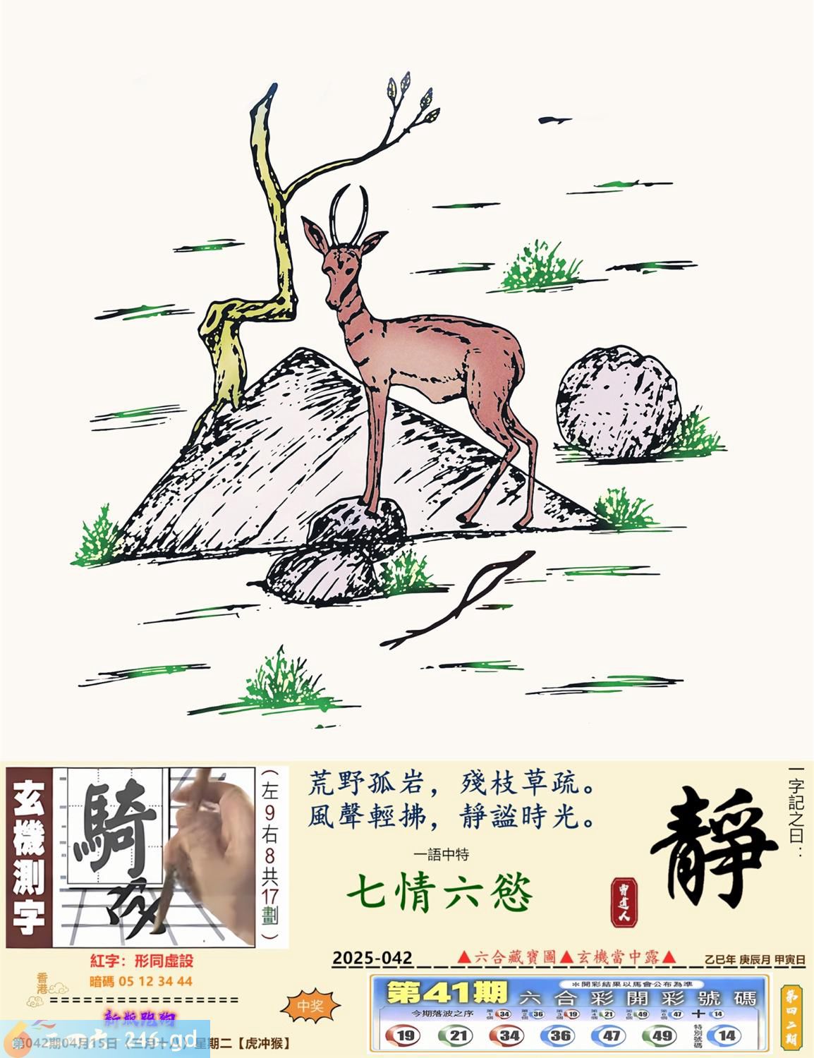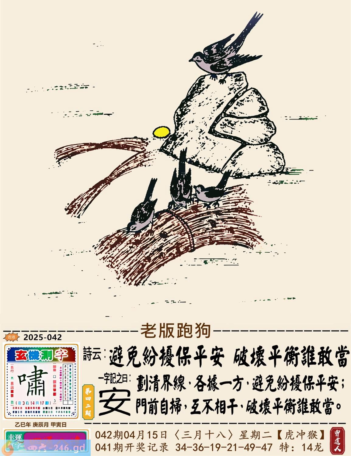 2025年4月15日042期侯(戊申)(大溪水) 042期:老版跑狗玄機一字記之曰:【安】 詩云:避免紛擾保平安破壞平衡誰敢當 劃清界線,各據一方,避免紛擾保平安; 門前自掃,互不相干,破壞平衡誰敢當。 玄機測字:《嘯》 密圖詩:會上镇導一席話 記:八仙賀喜到門前 特碼大小單雙句:小打小鬧 今期必中:孫權 042期:特碼歇后語 恶狗咬天-----狂妄(汪) 042期正版四字梅花诗:放手一搏。 042期火车头:烧伤狗。诗:马死牛伤,一蛇延愿十里长。 042期香港第一手欲钱料:猪? 042期曾道人说:“缅甸” 042期另版四字梅花:大年初三。 042期香港第一手欲钱料:欲钱看今年元旦的日子。 042期曾道人说:“为什么新年大家都要放鞭炮呢”? 042期:二字經:救國 042期:小学生是特码 042期:智力金壤:汪汪叫人 042期:信箱紅字:【形同虛設】 042期:【暗碼:05-12-34-44】 042期:一語中特:【七情六慾】 玄機發財圖:圖中明兔紅綠 042期:藏寳圖 新:再来秋野蟪蛄鸣 老:满身花影倩人扶 禁:龙禁:4尾玄机字《痴》 财爷送:“叁星在天” 2025年042期【生活幽默】版 〖不許在别人家吃飯〗 同事一家租房子住,下班比較晚,一般都是她兒子先到家,所以到飯點房東每次都叫孩子一起吃。同事感覺不好意思了,就很嚴厲的告訴她兒子以後不許在别人家吃飯,她兒子也欣然接受了。第二天房束又叫小朋友吃飯,小朋友很爲難的説:“我媽不讓我在你家吃飯了。”房束暂停了一刻,剛要再讓,孩子接着說:“但是我媽没說不讓我吃菜,吃點菜還行的。"